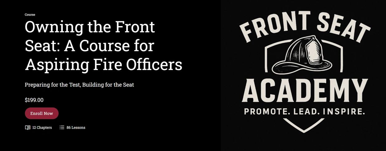 Owning the Front Seat is an online, self-paced program designed to build real-world officer-level leadership skills and get you fully prepared for your Fire Officer promotional process.